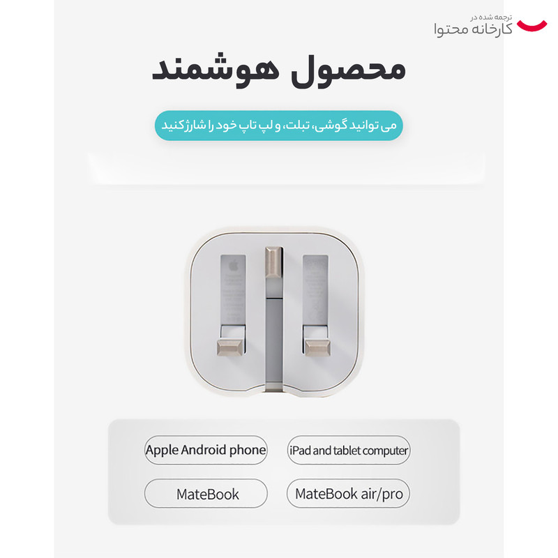 توان خروجی : 20 وات دارای گواهی CE مناسب برای گوشیهای اپل:iPhone 12 Pro - iPhone 12 Pro Max - iPhone 12 mini - iPhone 12 - iPhone 11 Pro - iPhone 11 Pro Max - iPhone 11 - iPhone SE (2nd generation) مناسب برای آیپادهای:iPad Pro 12.9-inch (4th generation) - iPad Pro 12.9-inch (3rd generation) - iPad Pro 12.9-inch (2nd generation) - iPad Pro 12.9-inch (1st generation) - iPad Pro 11-inch (2nd generation) - iPad Pro 11-inch (1st generation) - iPad Pro 10.5-inch - iPad Air (4th generation) - iPad Air (3rd generation) - iPad (8th generation) - iPad (7th generation) - iPad mini (5th generation)